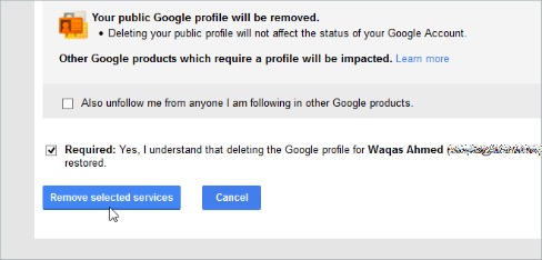 Note: There also have optionally on ‘Also unfollow me from anyone I am following in other Google products’. - Once done all step above, Google will remove your Google+ profile from Google account.